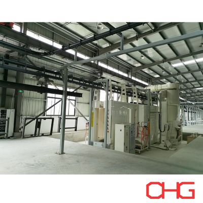 Deze geautomatiseerde poedercoatinglijn is ontworpen om metalen onderdelen van verschillende afmetingen en vormen te verwerken. De spuitcabine is gemaakt van duurzaam PP (polypropyleen) materiaal, wat zorgt voor weerstand tegen chemicaliën en een lange levensduur. Het spuitproces integreert automatisch pistoolspuiten met aanvullende handmatige coating, wat flexibiliteit en precisie biedt. De productielijn maakt gebruik van een power & free bovenloops transportsysteem, terwijl onderdelen handmatig worden geladen en gelost om diverse onderdeelgeometrieën te accommoderen en operationele aanpasbaarheid te garanderen.