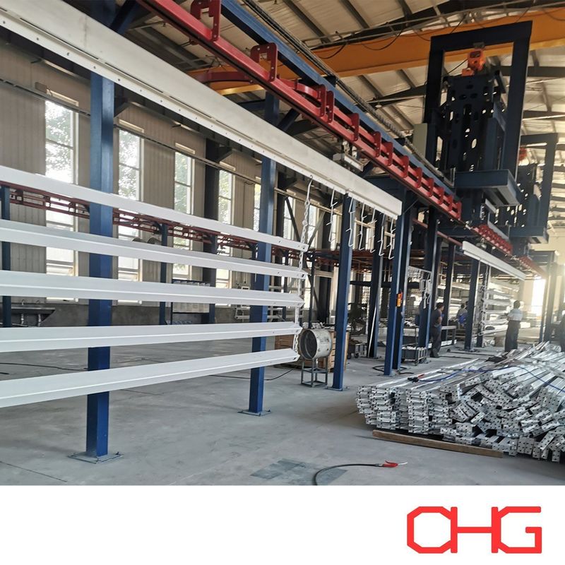 Deze poedercoatingsproductielijn is ideaal geschikt voor aluminiumprofielen van verschillende maten en vormen.de lijn vergemakkelijkt het handmatig laden en lossen van onderdelen, waardoor flexibiliteit en gebruiksgemak worden gewaarborgd.