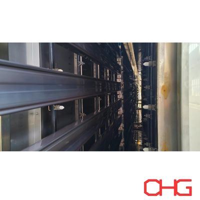 De werkstukken die door deze automatische poedercoatinglijn worden gecoat zijn schappen, en de lengte van de hangers is 13,5 meter. Het materiaal van de spuitcabine is PP, en de spuitmethode combineert automatisch pistoolspuiten en extra handmatige coating, en de productielijn maakt gebruik van het power & free bovenloopsysteem, en de onderdelen worden handmatig geladen en gelost.
